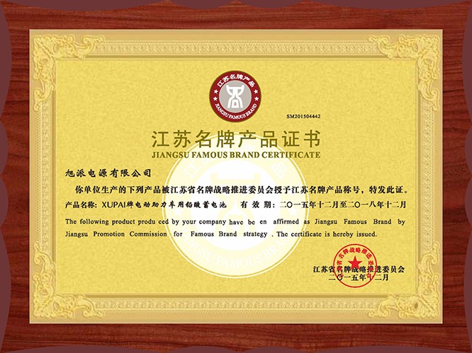 江蘇名牌產(chǎn)品證書