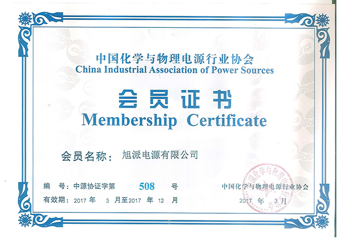 中國化學(xué)與物理電源行業(yè)協(xié)會會員證書